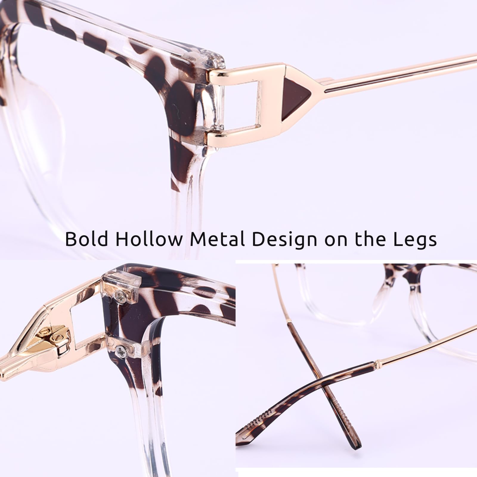 - FASHION-FORWARD DESIGN: Unique dual-tone square frames complemented by exquisite metal accents at the temples. This stylish blue light glasses serve as a chic accessory that elevates any outfit, from office wear to casual daily looks.